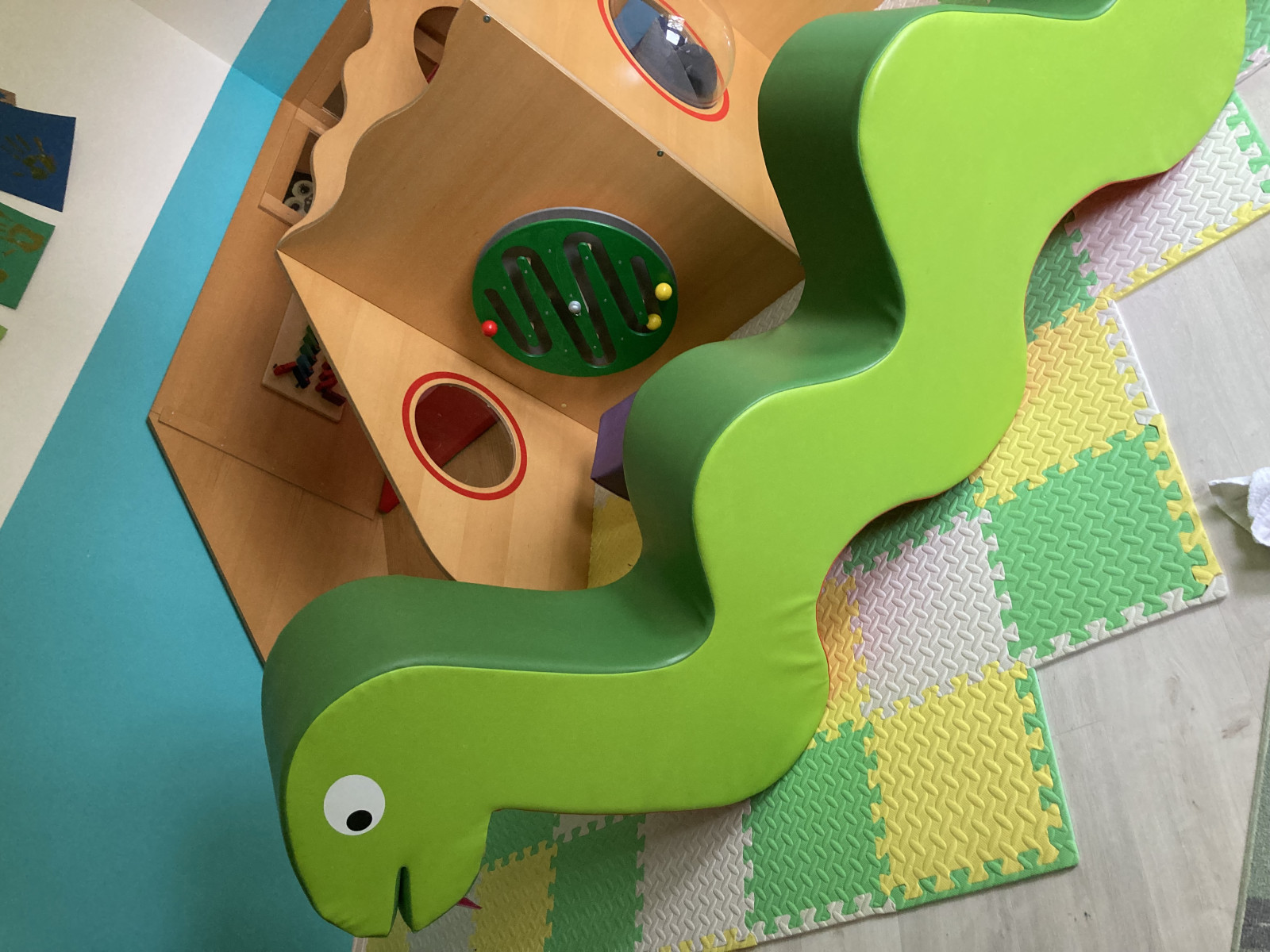 Kinder haben besondere Bedürfnisse an die Einrichtung: der Waschbereich hat einen Wickeltisch, niedrige Waschbecken und eine separate Toilette. Für den Mittagsschlaf oder um sich auszuruhen gibt es den Schlafbereich mit einer eigenen Matratze für jedes Kind. Die Küche ist besonders wichtig: hier bereiten wir – auch oft gemeinsam mit den Kindern – die Mahlzeiten zu und lassen es uns zusammen am großen Tisch schmecken. In den Räumen gibt es verschiedene Bereiche zum Basteln oder Spielen – mache Bereiche werden auch für verschiedene Anlässe umgeräumt. In den Räumen wird natürlich nicht geraucht.